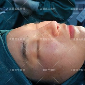 采用膨体垫高鼻背,单侧耳软骨成型鼻尖
