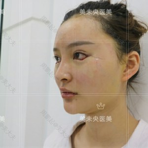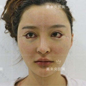 手术是局麻的,打针的时候有点点疼,然后就感觉眼睛周围麻木啦,手术开始的时候也没有疼痛感,只有部分牵扯感,做完麻药过了会有肿胀感。现在的眼睛有点夸张了,下至不用缝线的,外眼角有缝线,一周后拆了线相信会好很多。