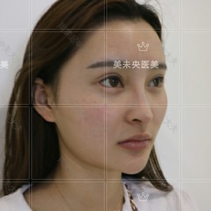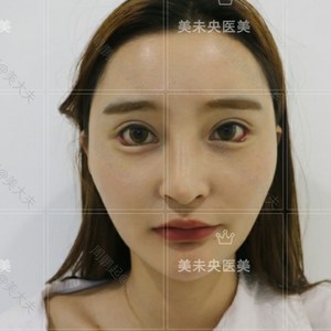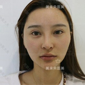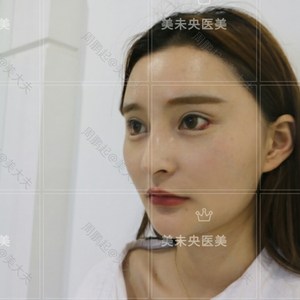 顾客虽双眼皮,可有轻微的大小眼和吊眼问题,眼裂较短。