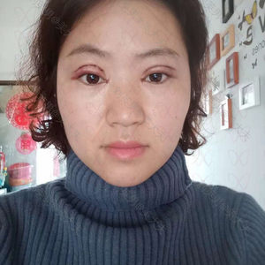 术后双眼皮更明显、两侧形态一致,改善肿眼泡
