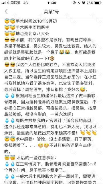 看了很多做鼻子的分享,今天轮到自己分享了哈,感谢周大大技术棒棒的,让我鼻子变得美美的,拍照更大胆了,聚会多了,社交更自信了,一句话谢谢周大大