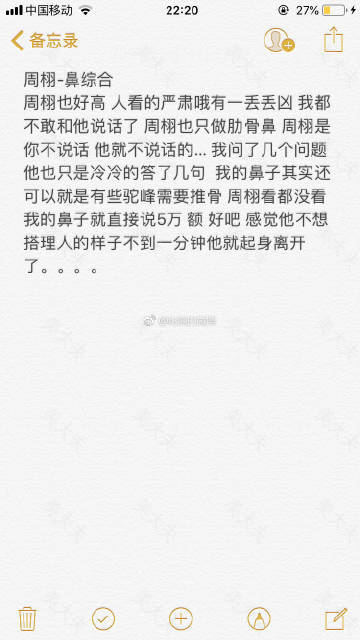 今天面了周栩,周栩说看着像感染,但让我去做内窥镜排查,还说我这山根看着就不像垫了1毫米也说我轮廓感强烈