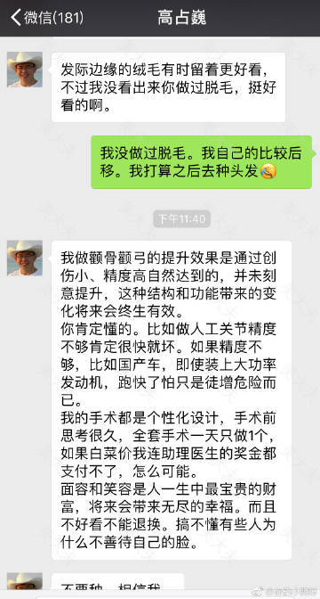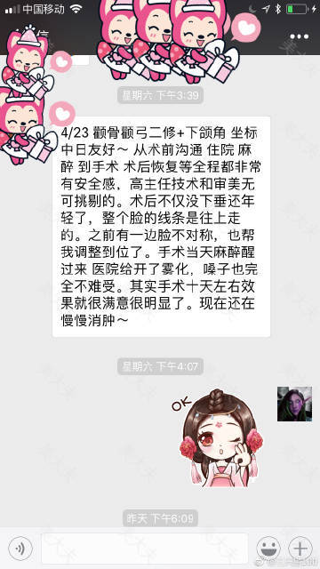 纠正一下,高占巍颧骨并没有刻意做筋膜提升,但我却真实感觉到自己的眼尾上提了(原来有点下垂)。认识三个高的患者,一个五年,一个是上次去医院那个女生术后一年来拔钉子,还有一个是我的闺蜜术后三个月,都说完全没垂。高有和我说过原理,关于肌肉走形问题,非常赞同他的术式理念。其实关于发轮廓功课我是抵触的。有时候觉得这个医生很好,多为他说两句,有人还觉得你是托!!!很气愤好吗!可是关心我轮廓的仙女有点多。我又不好意思拒绝。大家都是慢慢走过来的。哎。。。。很开心找了高。没有选错没有踩雷.