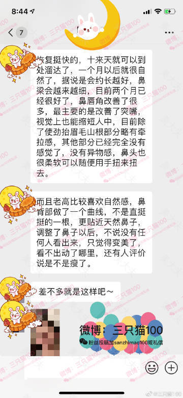 #三只猫的科普# 注:单纯假体隆鼻只适合鼻基础特别好的,我做的也是这种,我并非高占巍做的。单纯膨体隆鼻优势是恢复非常快,拆线就自然(前提是做得好)。膨体确实有很小的感染率,我现实中认识的做膨体鼻的非常多,都好几年了,没有一个人感染。都是网上、群里有人说感染,我觉得膨体感染是个极低概率事件,网上却放大了。我自己的膨体鼻今年是第11年。再说一遍,单纯膨体隆鼻只适合鼻基础非常优秀的妹子,宽鼻肉鼻头大鼻头的老老实实做鼻综合、鼻尖用肋软骨,此种术式这类妹子可忽略。