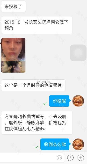#微博投稿——脸型#15年12月在长安医院卢丙仑医生处做的下颌角,方案包括超长曲线截骨、不去咬肌、磨外板,静脉全麻,价格包括住院体检等4w,照片为术后一个月。