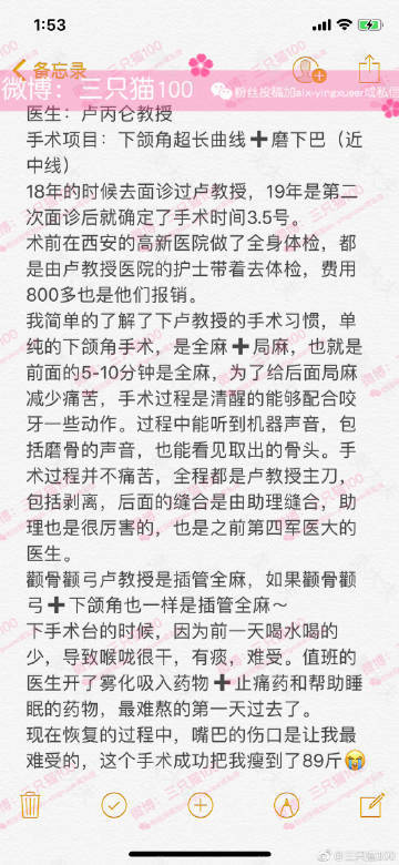 妹子在做下颌角全麻时,全程都是有知觉的,大家可以好好看看她写的文案。
