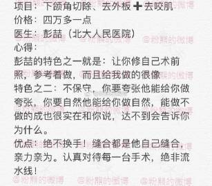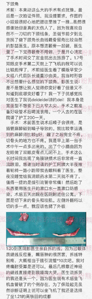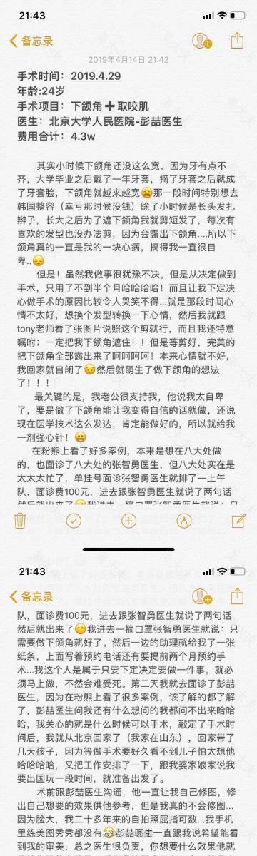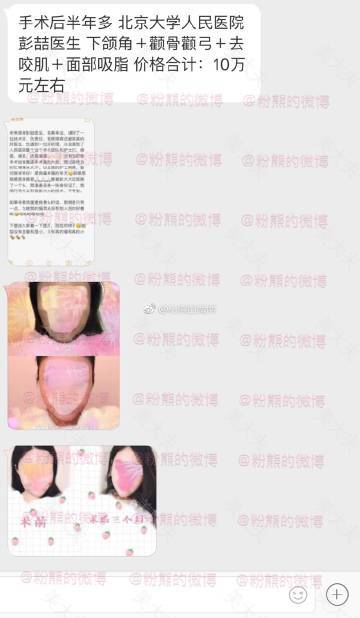 #粉熊的微博一脸型投稿#3月29日,北京大学人民医院,彭喆医生,下颌角+取咬肌,手术费用4.3w。