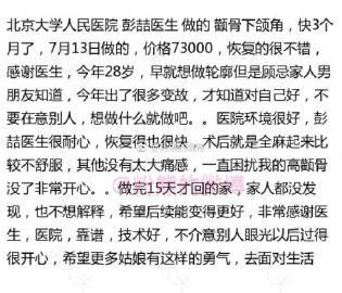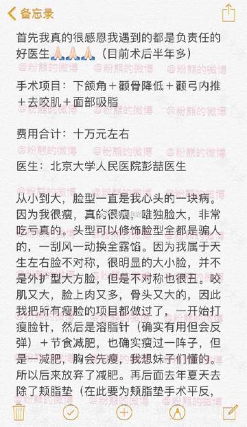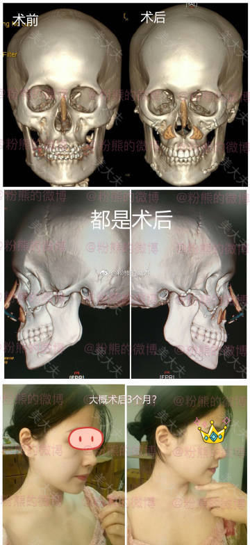 #粉熊的微博一脸型投稿#2017年1月,北京大学人民医院,彭喆医生,下颌角颧骨截骨,7万。