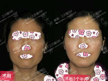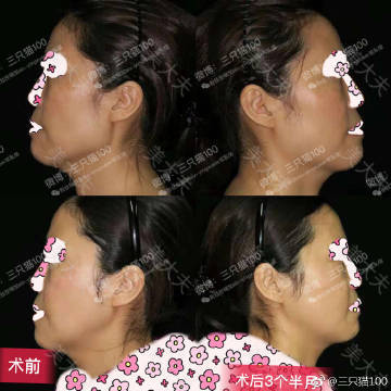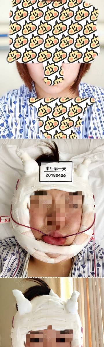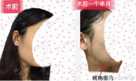 因妹子年龄大,术前已有下垂迹象,所以其实医生术前对她术后下垂这块儿不怎么乐观,但妹子术后维护非常到位!术后不咀嚼、连话都几乎不说,拆线前头套儿24小时戴,拆线后夜里不戴,一睁眼就戴上,目前3个半月也几乎除了睡觉都是睁眼就戴头套儿的(偶尔出去1-2个小时不戴),所以3个半月没有一点下垂。医生谨慎的表示目前三个月看不垂,不知道半年怎么样。