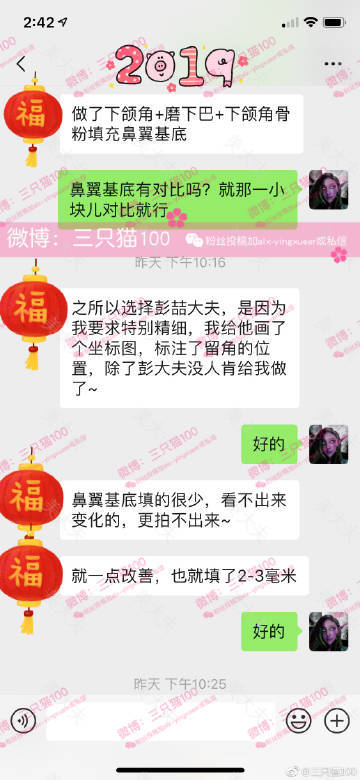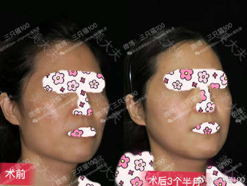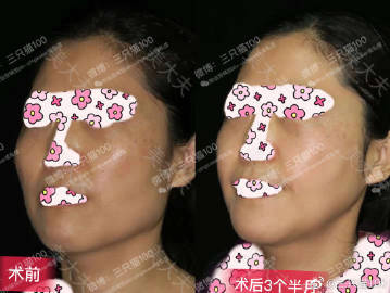 妹子提供给我的照片都是三个月复查时彭喆用单反拍的同角度同景别照片,非常客观的对比,她给我的时候给的是全脸无遮挡照片,我打马时也在保护其个人隐私的前提下,尽量露出面中部,以真实客观展现术前术后面中部到底有无下垂迹象。