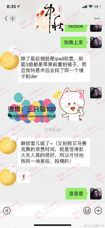 妹子特别严谨,所有照片都同设备对镜拍,甚至还专门找了同一面镜子。是真的觉得彭喆人很好,才专门同场景拍摄投稿儿的。