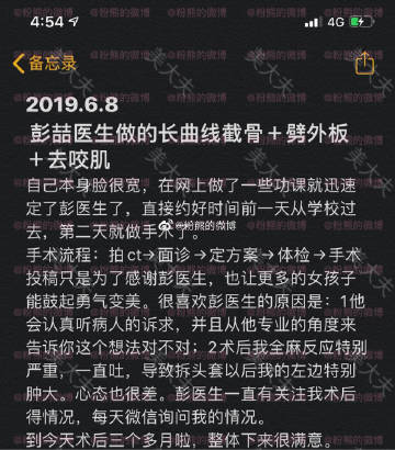#粉熊的微博一脸型投稿#今年4月,北京大学人民医院,彭喆医生,下颌角,去咬肌,费用4万多一点。