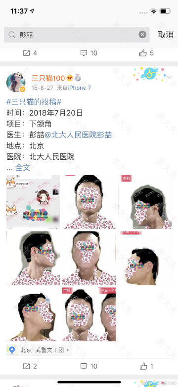 #三只猫的投稿后续##三只猫的投稿# 小哥哥2018年7月20日彭喆医生@北大人民医院彭喆 做的下颌角,一个月曾投稿儿👉🏻网页链接,现在术后9个月,又发来了投稿儿后续,非常满意
