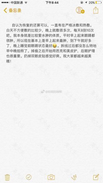 粉熊的微博一双眼皮投稿六月十一日,广州颜美荟医院,潘贰医生,全切双眼皮,费用1w5。#微博投稿一一双眼皮##双眼皮#