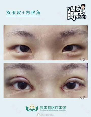 #微博投稿——眼角修复#15年8月在潘贰医生处做的内眼角修复,价格两万。想双眼皮也修了,潘博说不需要,一是费用增加,二是恢复期漫长。术后到现在现在已经一个半月了,很满意,还在恢复期,没有消肿,有增生,或许会有疤痕,但比起修复前的眼睛好太多太多,真心感谢医生。