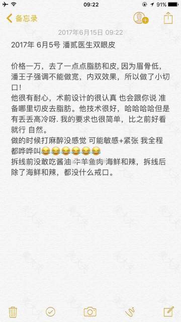 #微博投稿一一双眼皮#6月5日在广州潘贰医生处做的全切双眼皮、去皮去脂,价格1万。