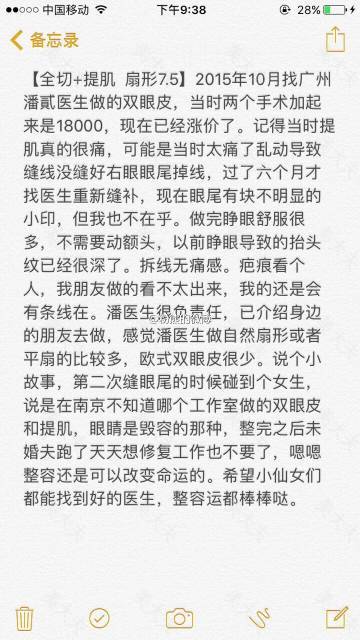 #微博投稿一一双眼皮#15年10月在广州潘貳医生处做的全切双眼皮、提肌,价格18000。