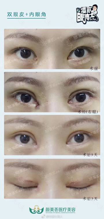 #微博投稿之双眼皮#广州颜美荟医疗美容医院潘贰@潘贰眼博士 医生全切双眼皮、右侧内眼角案例。