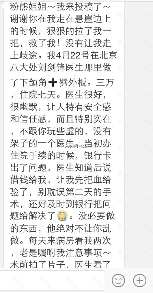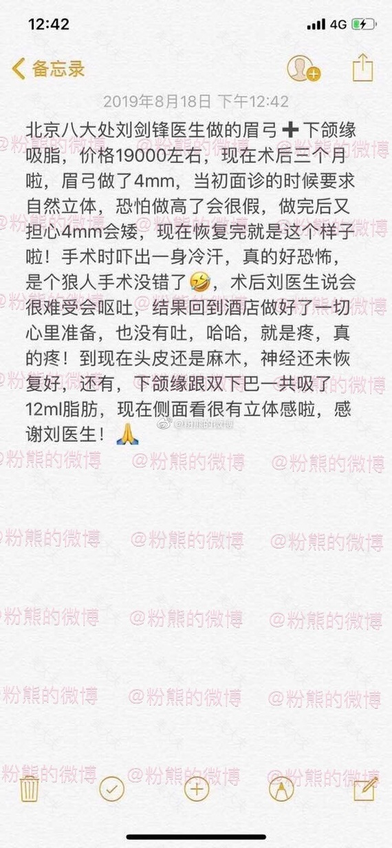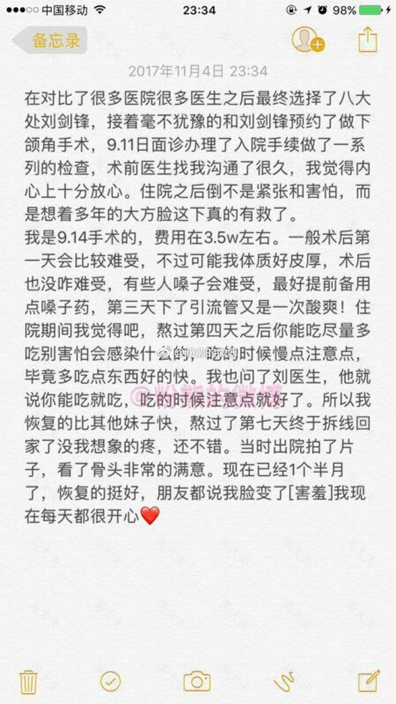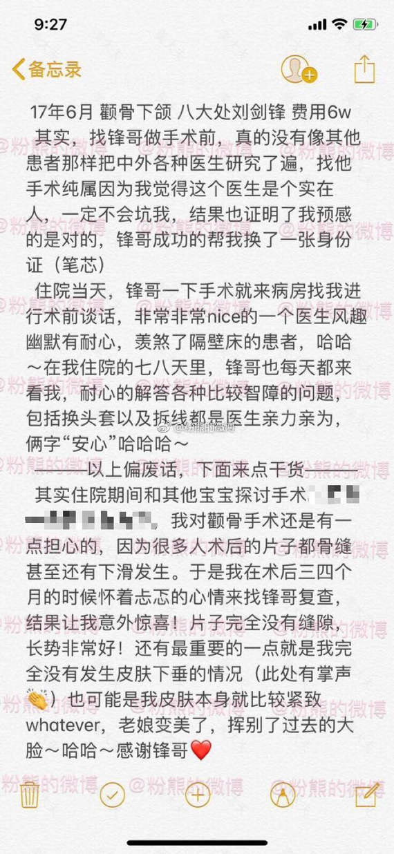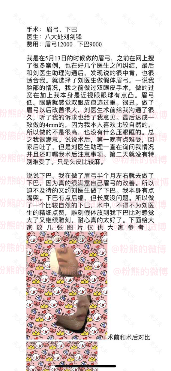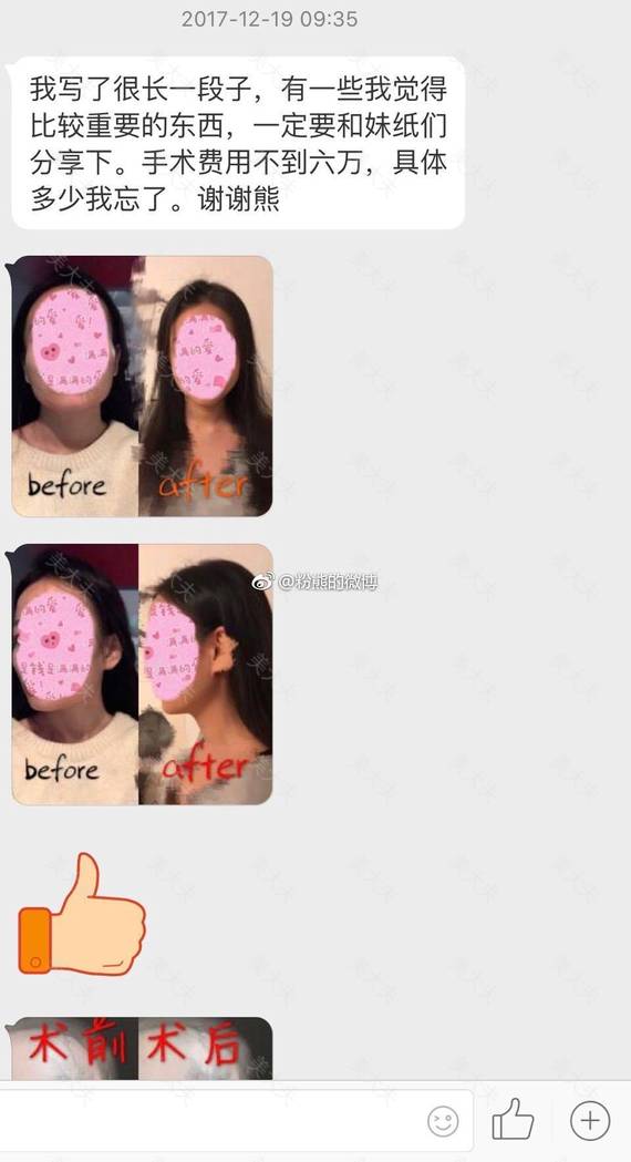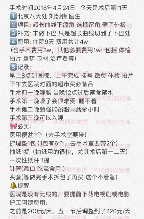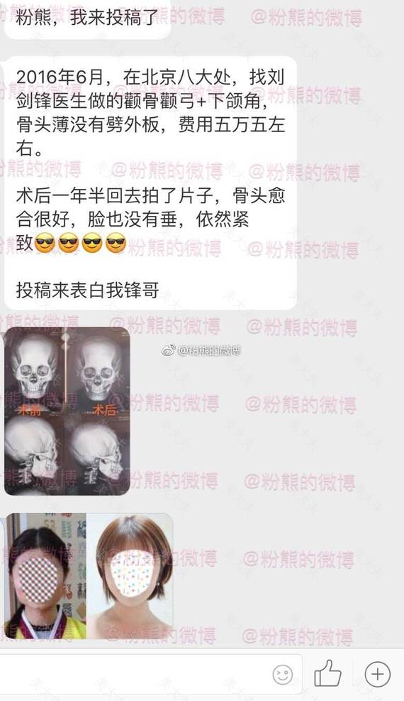 #粉熊的微博一脸型投稿#17年6月,北京八大处,刘剑锋,脸型手术,费用6w。