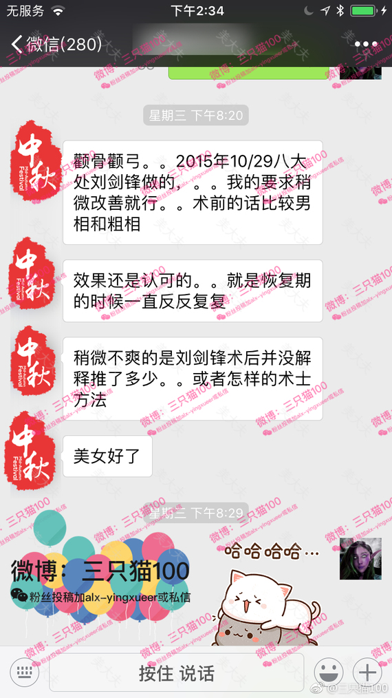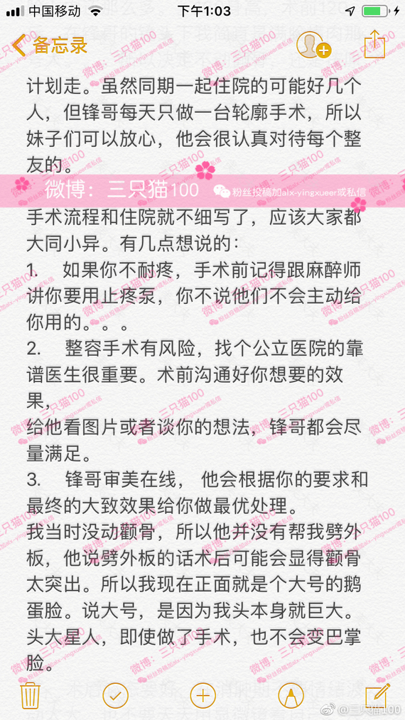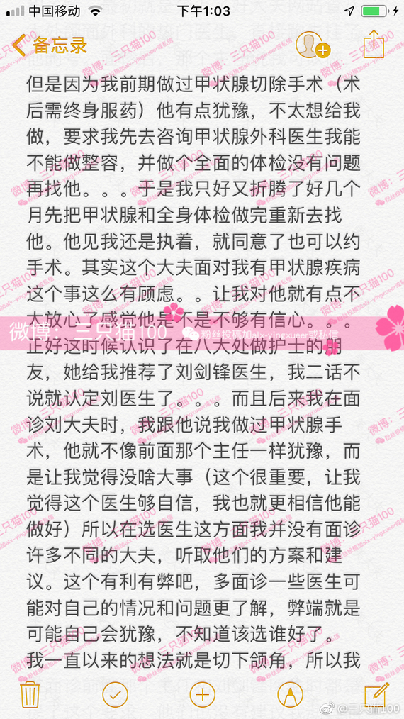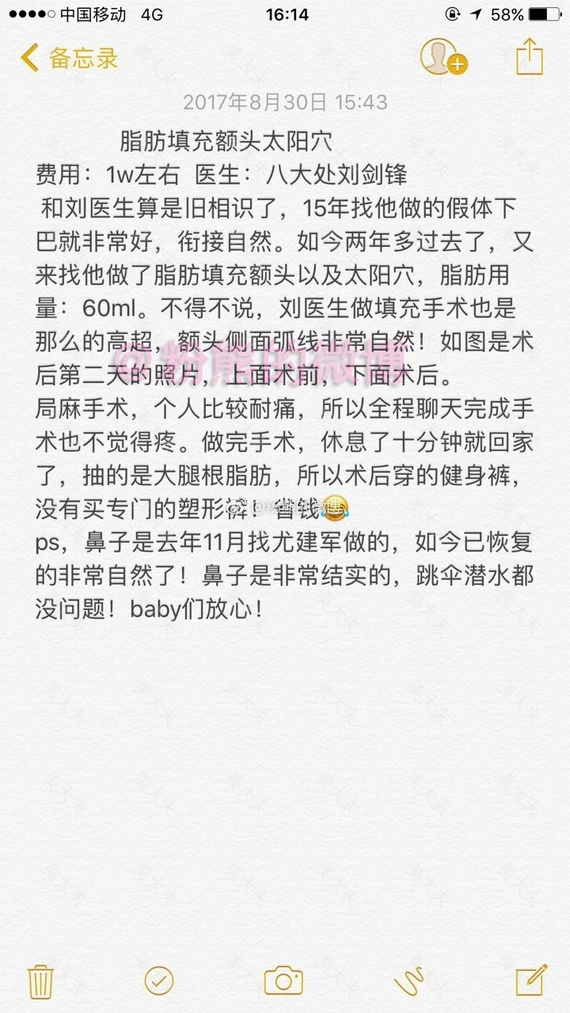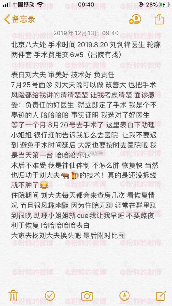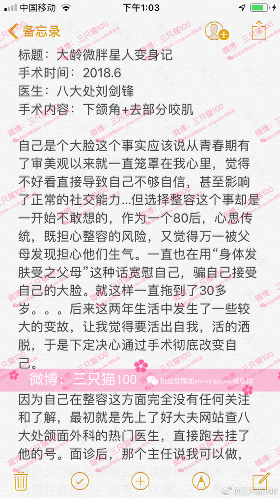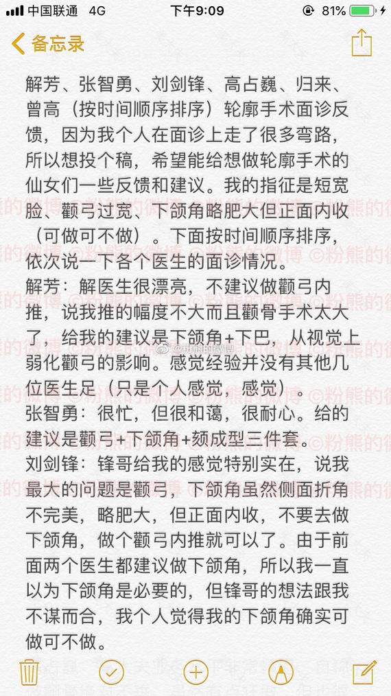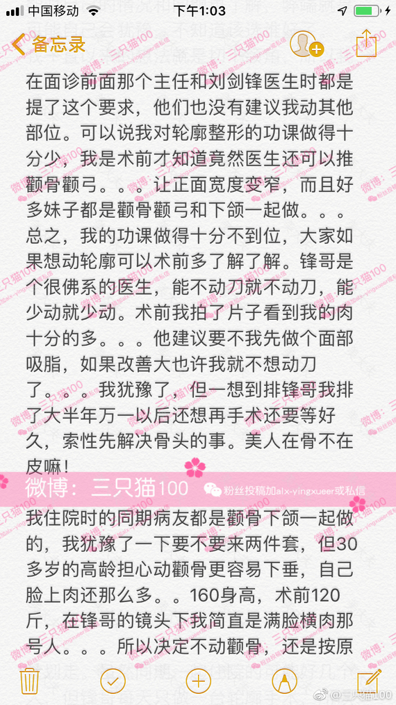 #粉熊的微博一脸型投稿#17年6月,北京八大处,刘剑锋,脸型手术,费用6w。
