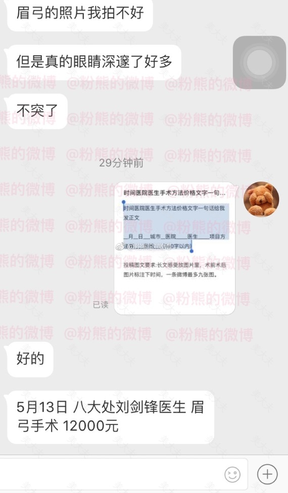 #粉熊的微博一下巴投稿# 5月13日 八大处刘剑锋医生 ,下巴,眉弓,分别9000.12000