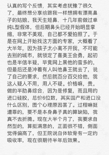 #微博投稿一一鼻整形#4月10日在上海喜美王会勇医生处做的半肋软骨鼻综合,价格10w。