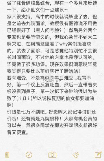 功课量好大啊,还有好多隆鼻医生,没事 我暂时穷 可以多做做 等我攒够了钱 功课也做的差不多了,最好能做成ppt 我就可以安心的把鼻子修复了。