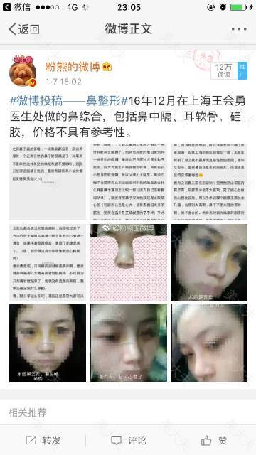 #粉熊的微博一鼻整形投稿#3.27,上海喜美,王会勇,鼻中隔➕耳软骨鼻综合,价格8w左右。