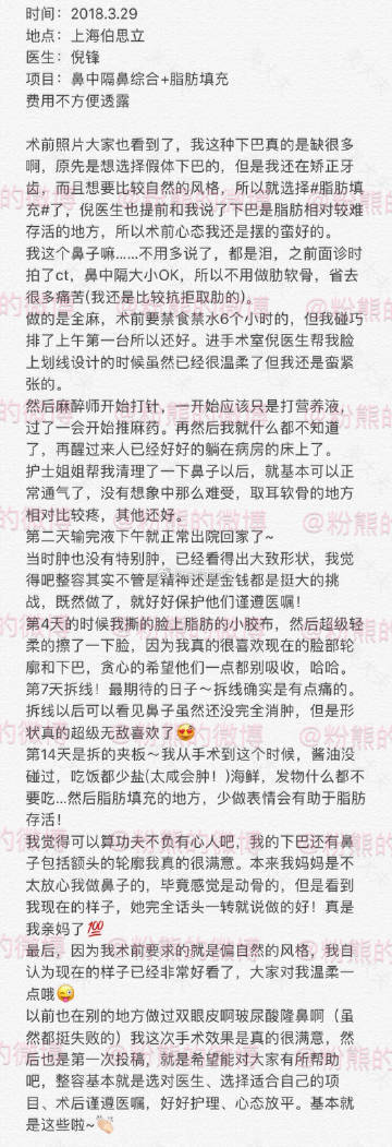 #粉熊的微博一鼻整形投稿#3.29,上海伯思丽,倪锋医生,鼻中隔鼻综合+脂肪填充,费用不方便透露。