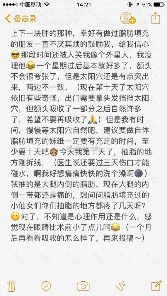 填充110天,以前看起来沧桑的脸变得好少女,都有一个恢复过程,过程很丑,脸太肿啦!