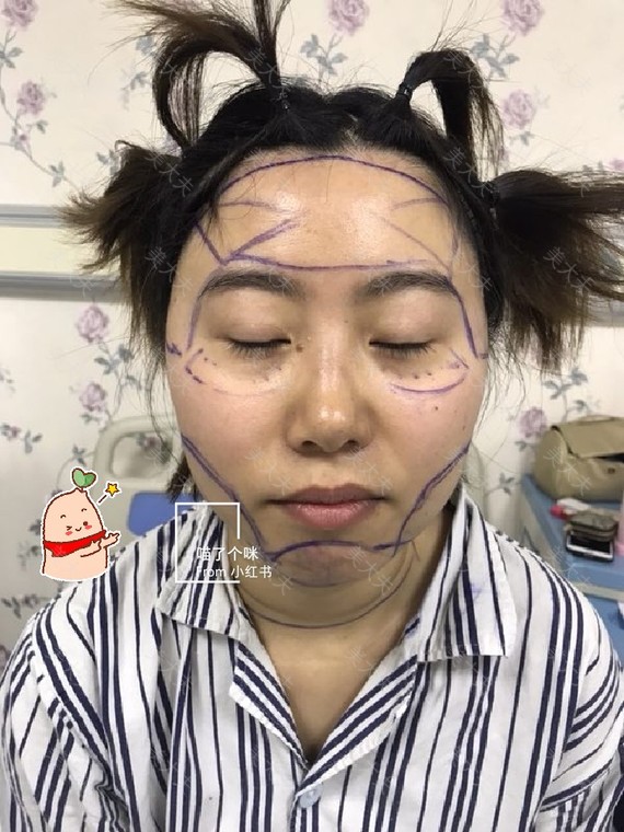 我做了全脸的,广州军美做的,上半脸做了自体脂肪填充,有额头,太阳穴,眼圈是用了脂肪胶填充的,因为下半脸是做了V脸,假体下巴和吸脂。