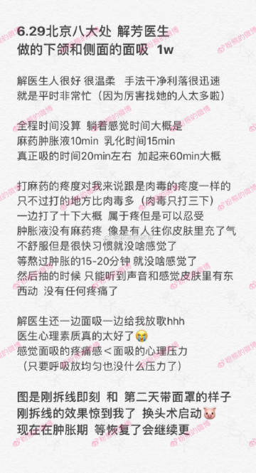 #粉熊的微博一吸脂投稿#6月29日,北京八大处,解芳医生,面吸下颌缘,费用1w
