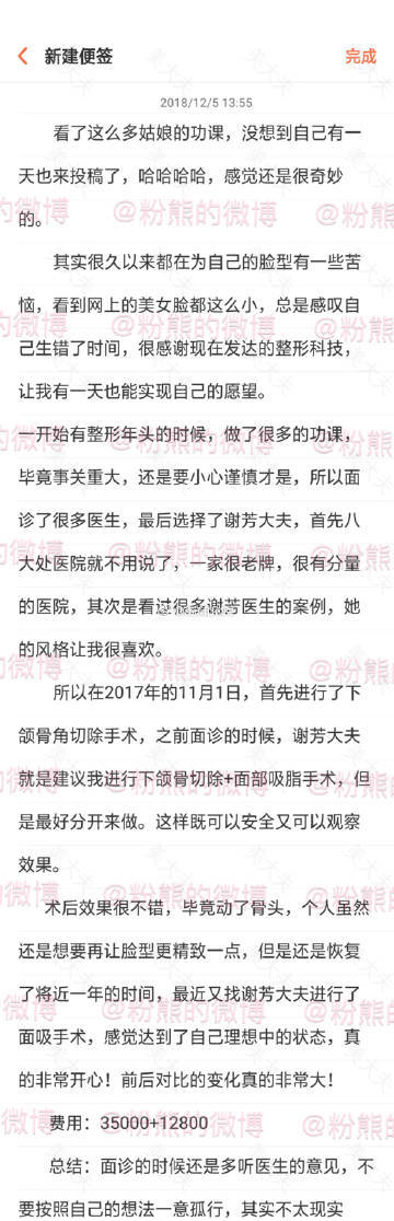 #粉熊的微博一脸型投稿#12月份,中国医学科学院整形外科医院(就是八大处),解芳医生 ,下颌角长弧形截骨,下颌骨外板去除,颧骨颧弓内推,总费用:55000元。