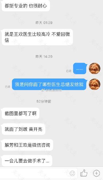 之前很不满的地方是解芳医生的助理给我时间约的周日,说变动提前一周告诉我,结果我手术前两天问她,她说做不了让我改时间🙄,然后术前抽血,我问她是不是一定要来八大处抽,她没回我,所以我抽了两次血🙄,一个好的助理真的太重要了,解医生说马上换个靠谱的助理