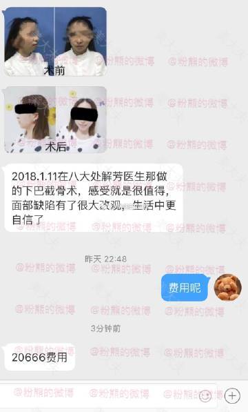 #粉熊的微博一脸型投稿#2018.1.11,北京八大处,解芳医生,下巴截骨术,费用20666。