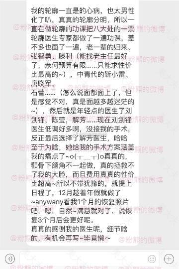 #粉熊的微博一面诊投稿#11月14日八大处轮廓手术滕利、解芳、靳琦医生面诊以及瘦脸针经验。