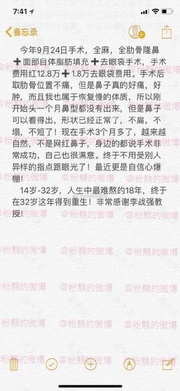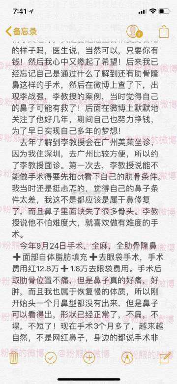 #粉熊的微博一鼻整形投稿##粉熊的微博一抽脂填充投稿##粉熊的微博一去眼袋投稿#2017年9月24日,广州美莱特约专家李战强教授,自体肋骨➕面部脂肪填充➕去眼袋,费用共计14.6万。