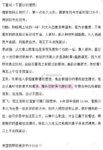 #粉熊的微博一面诊投稿#北京八大处刘暾、李战强、王欢、范飞4位医生鼻整形面诊反馈。