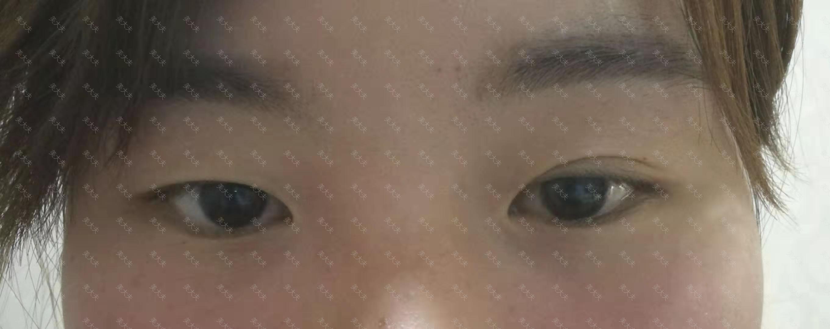 “两只眼睛大小眼,睁眼无力,肿眼泡,上眼睑经常贴双眼皮贴导致皮肤松弛。”