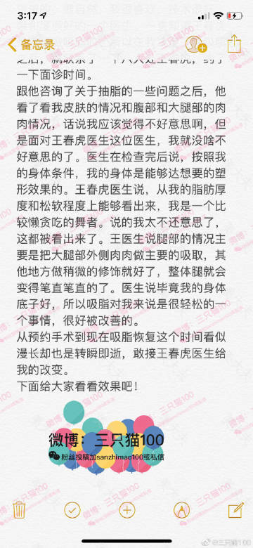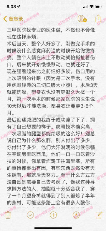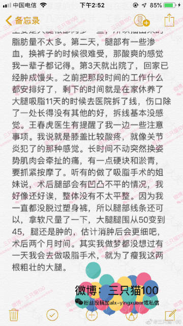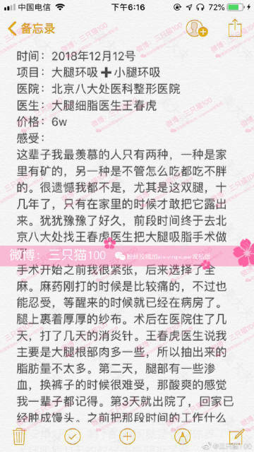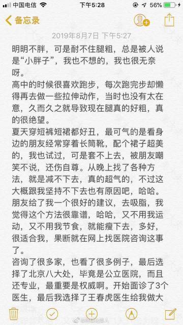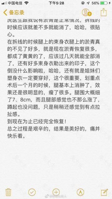 妹子私信投的稿儿,目前术后6个月,效果非常满意,大腿围瘦了5cm