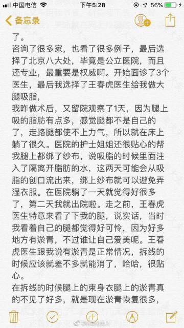 大腿吸脂投稿——4月份在北京八大处王春虎医生处做大腿吸脂,花了6万多,抽了4000cc