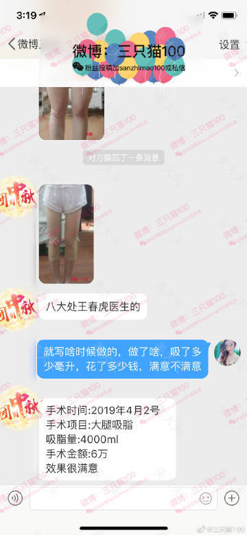 #粉熊的微博一吸脂投稿#2019年3月份,北京八大处,王春虎,做的大腿修复,价格10万~