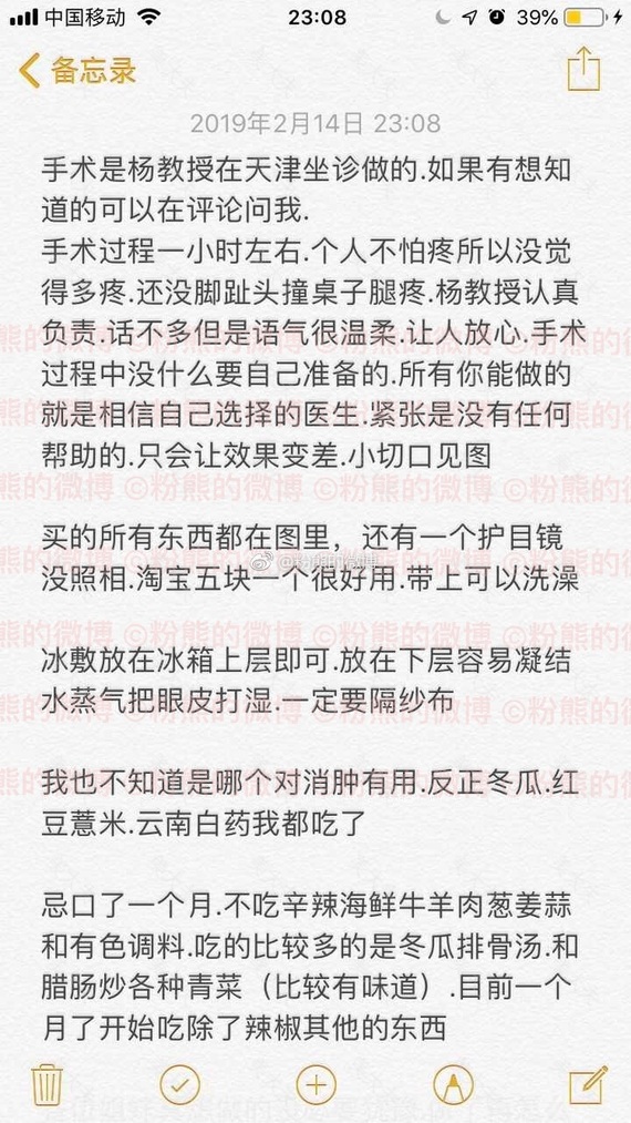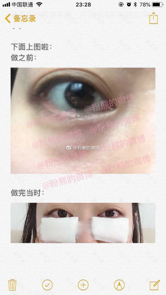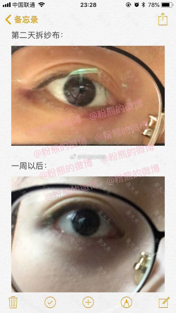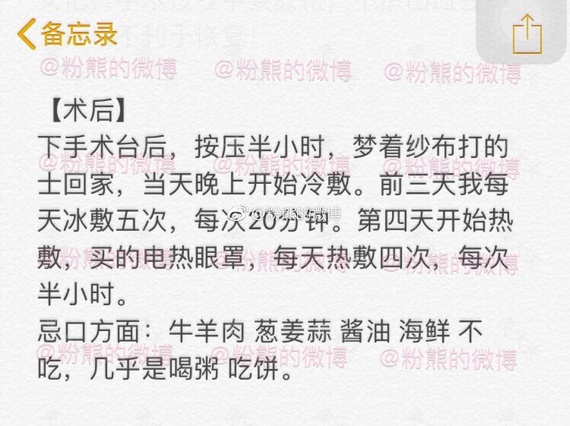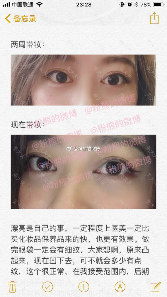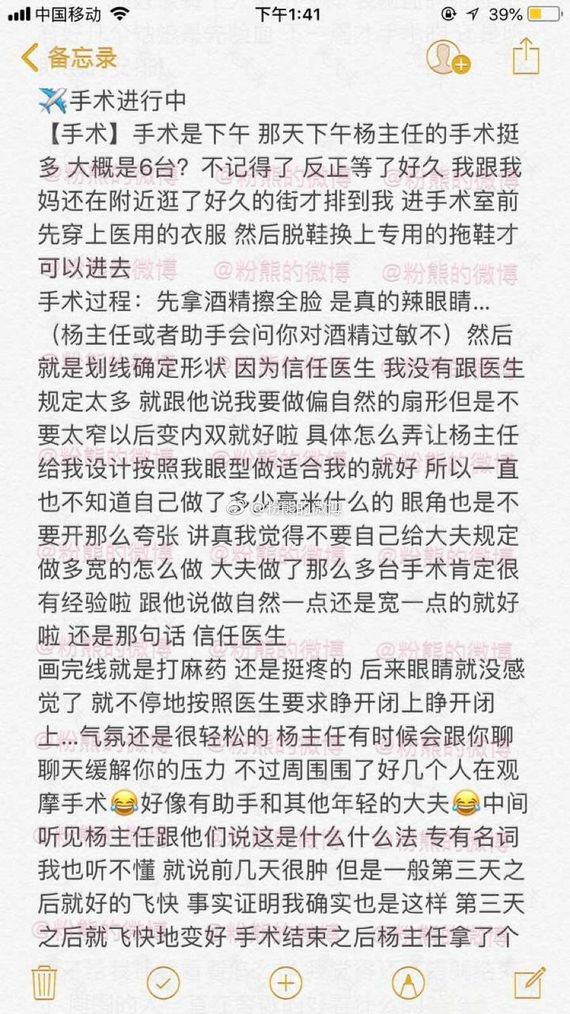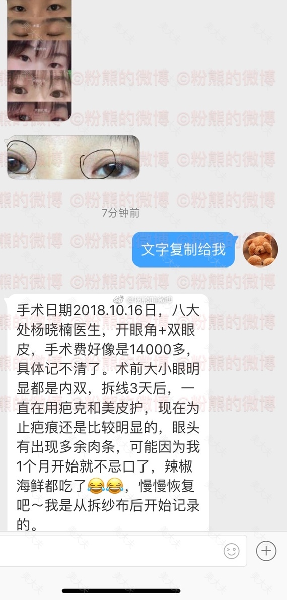 粉熊的微博一双眼皮投稿 手术日期2018.10.16日,八大处杨晓楠医生,开眼角+双眼皮,手术费好像是14000多双眼皮