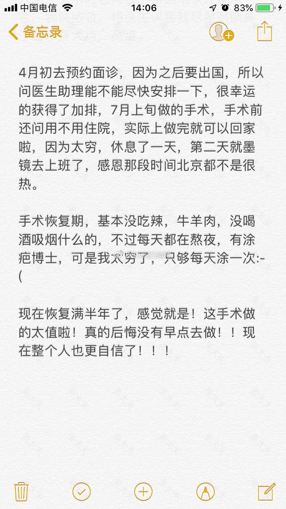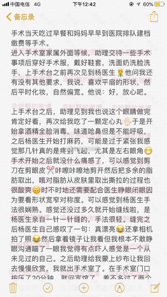#粉熊的微博一双眼皮投稿#2018年1月23号,北京八大处,杨晓楠,双眼皮内眼角,具体宽度没问,价格杂七杂八不到一万。