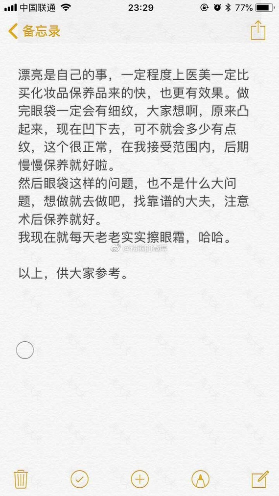 粉熊的微博一双眼皮投稿2019年5月21日,北京八大处杨晓楠医生,泪腺复位、开眼角、去皮去脂全切,费用19200~#微博投稿一一双眼皮##双眼皮#