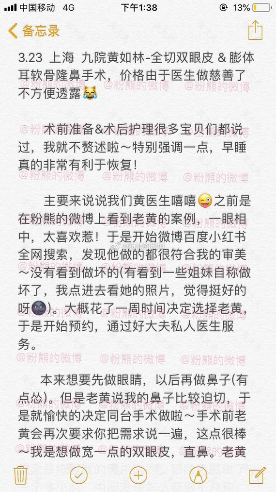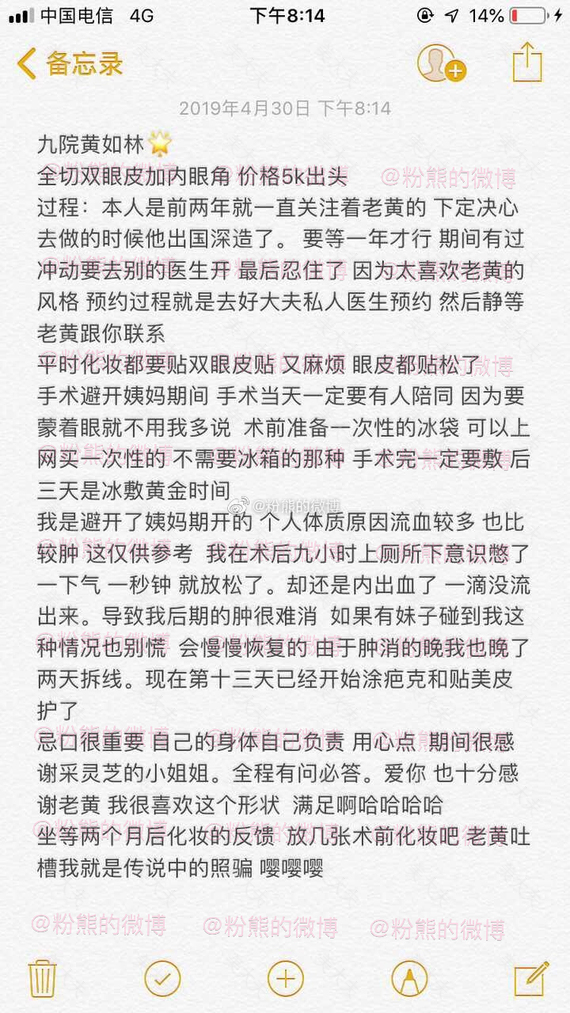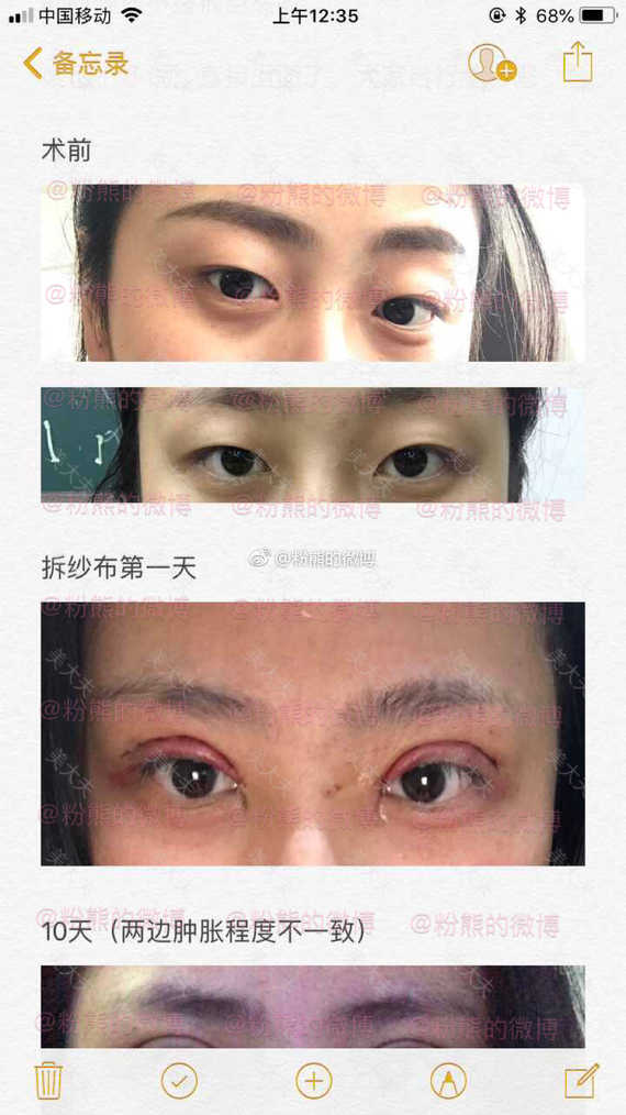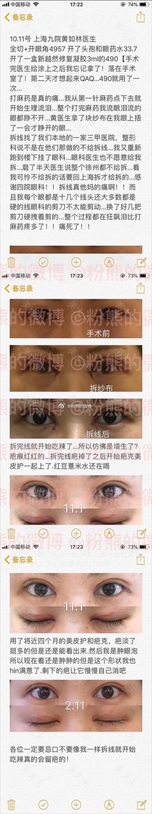 粉熊的微博一双眼皮投稿5月15日,上海九院,黄如林,全切+开眼角,费用7900~#微博投稿一一双眼皮##双眼皮#