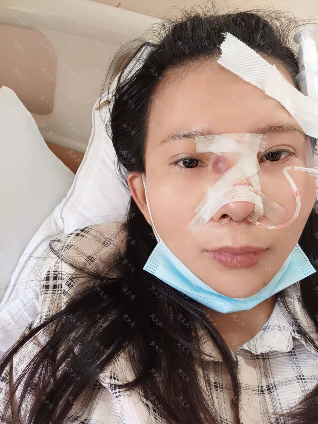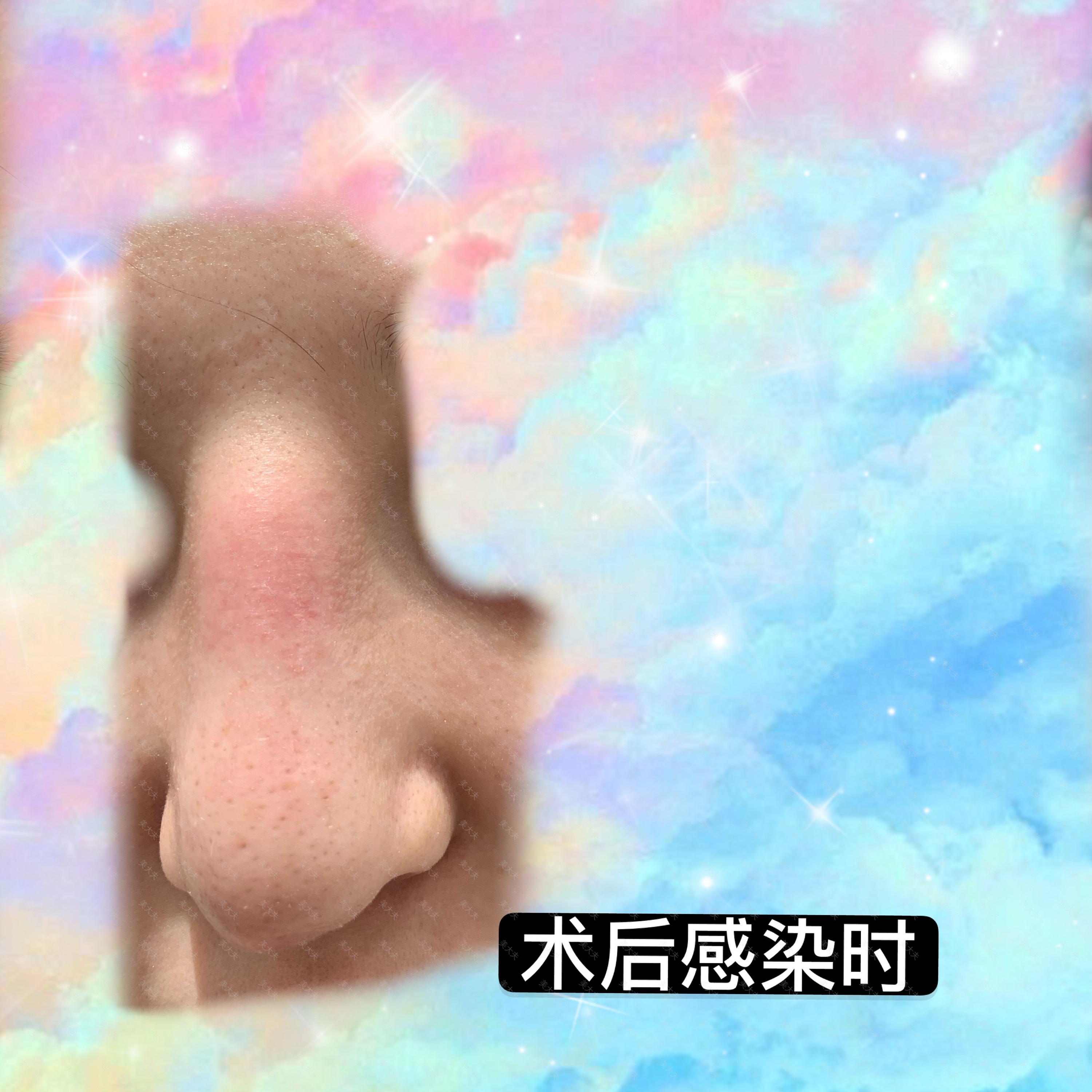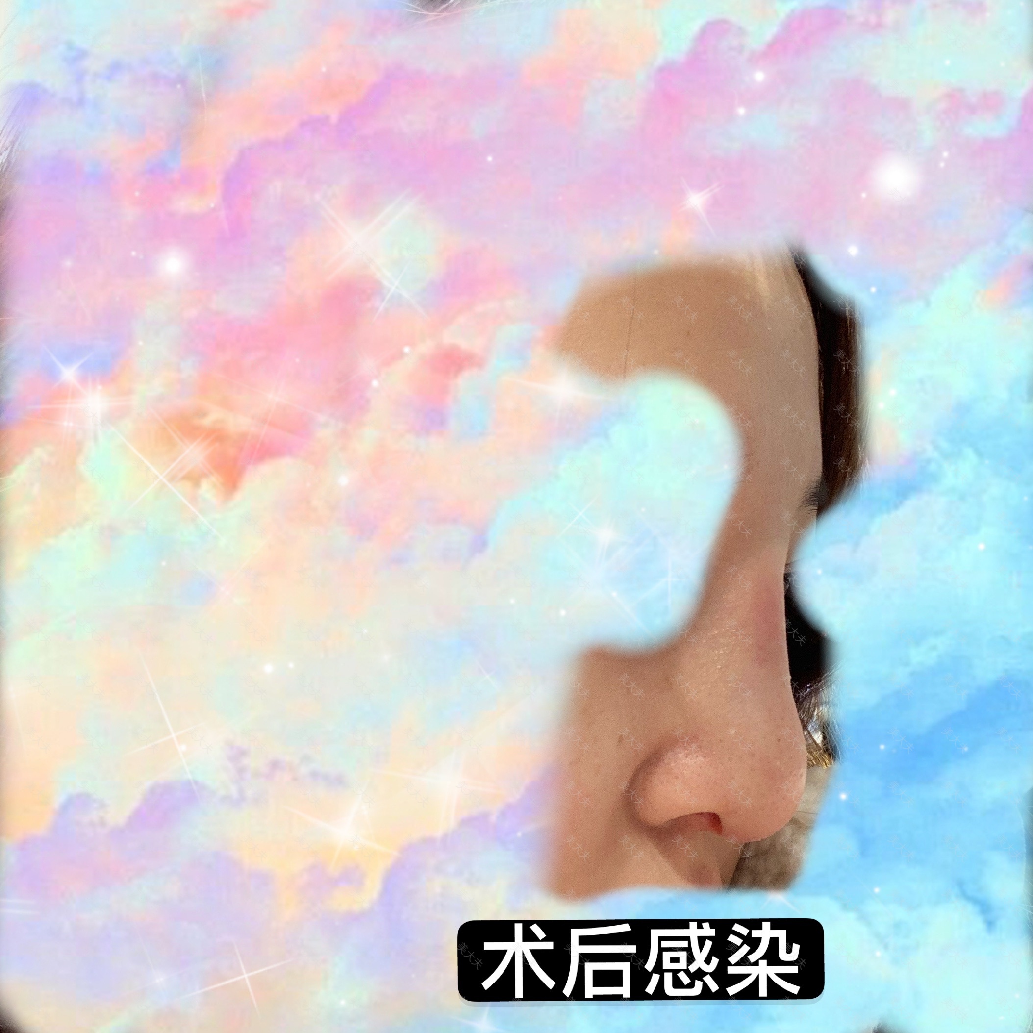 在这里,敲重点了哈!!!不得不夸奖博士后黄医生,别人的膨体感染案例都在鼻头,而经过黄医生之手,我的感染是在山根耶!就是那个最像阿凡达的特征的地方!果然与众不同呢