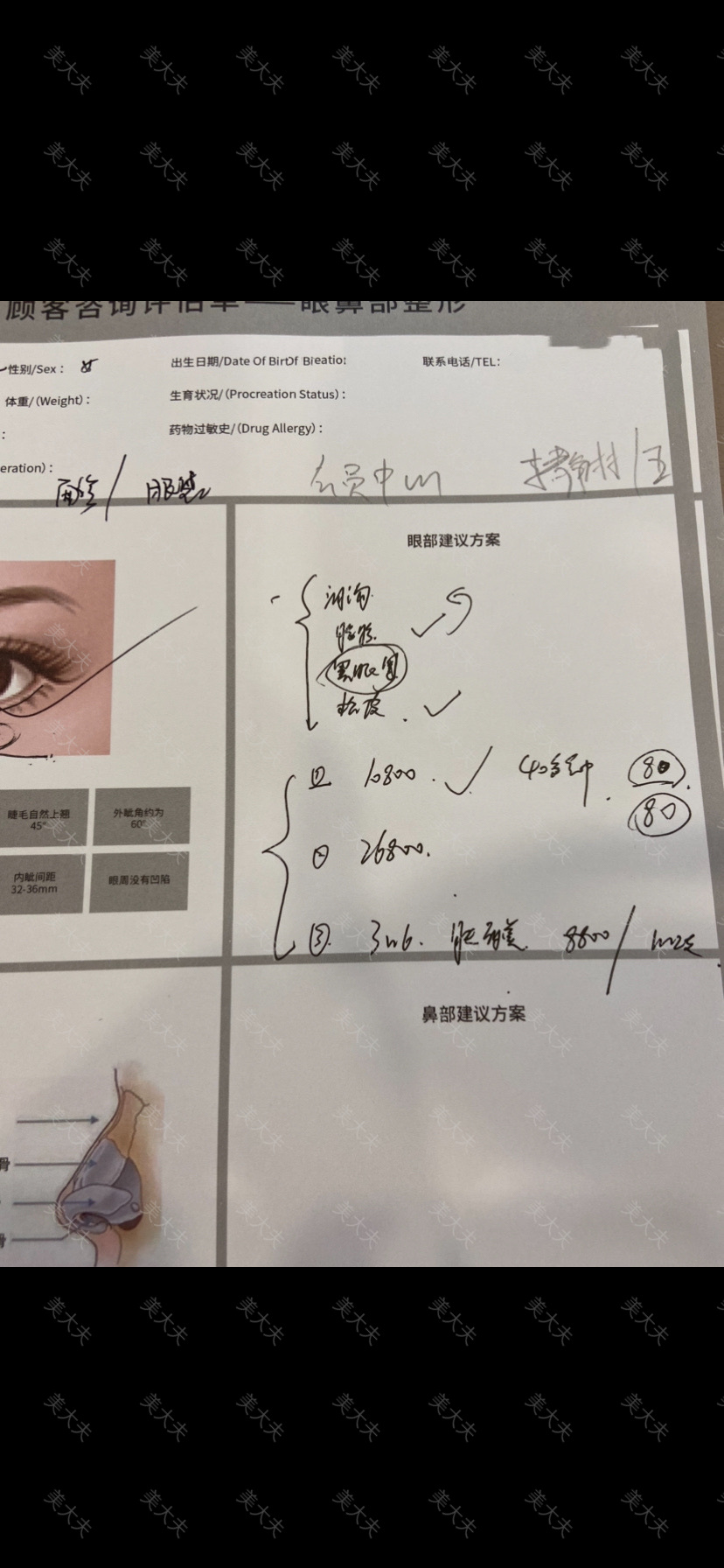 (附上其他机构的报价一张,可以看到,仅仅手术的报价就已经过半,更别提其他玻尿酸的价格了)