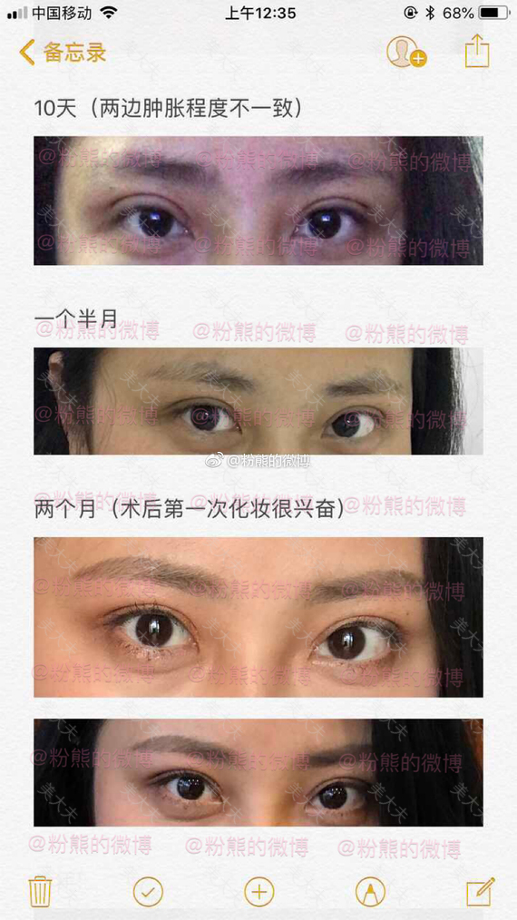 粉熊的微博一双眼皮投稿5/22/2019,上海九院,黄如林医生,全切双眼皮,费用5k+。粉熊的微博一双眼皮投稿#双眼皮#