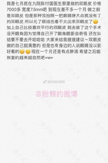 #粉熊的微博一双眼皮投稿#七月底,上海九院陈付国医生,双眼皮7200左右。